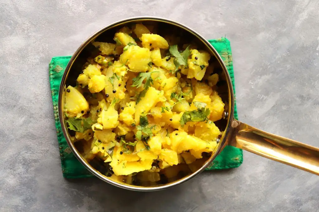 Aloo ki kadhi adapts the classic yogurt-kadhi idea to vrat-friendly ingredients by using singhara or kuttu flour as the thickener instead of besan. Start by whisking the flour into water to make a smooth slurry, then add to simmering milk or a light yogurt alternative if your tradition allows dairy. Add small potato cubes that have been parboiled, along with seasoning of rock salt and green chilies. Simmer until the kadhi thickens and the potatoes are tender, then temper with ghee and curry leaves for aroma if permitted. This dish is tangy, soothing and pairs nicely with sama rice or plain boiled potatoes. Kadhi is comfort food for many families; this vrat-friendly version gives the same soothing bowl with festival-safe ingredients. In North America, singhara and kuttu flours are available online, and you can prep the potato component ahead to cut active cooking time on a festival day.