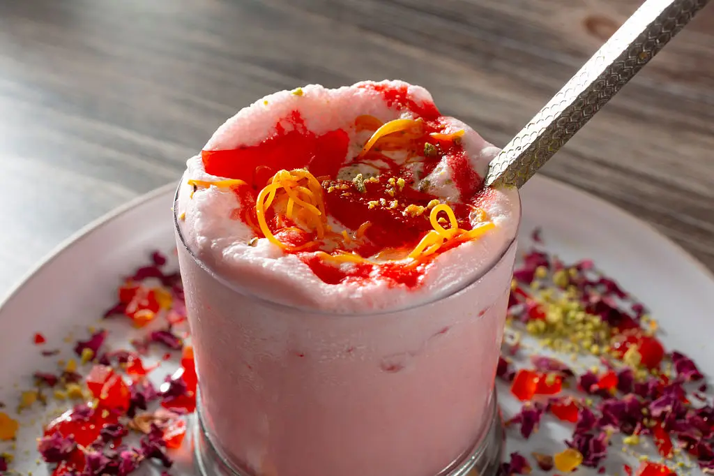 Kulfi and Indian-flavored milkshakes pair dense frozen textures with bold garnishes—and they look great in motion. Gulkand (rose petal preserve), kesar (saffron), pistachio kulfi, or a kulfi float over chilled rabri offers layers of color and a thick pour that reads well on screen. For a fast home version in North America, blend good vanilla ice cream with condensed milk and crushed pistachios—add a spoonful of gulkand for a floral twist. Kulfi sticks, or frozen falooda noodles, make strong props for photos.