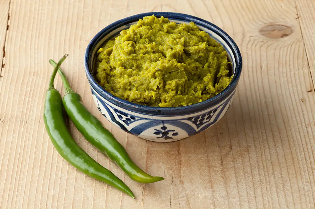 8. Finish with green chilies and a spoon of raw mustard for brightness