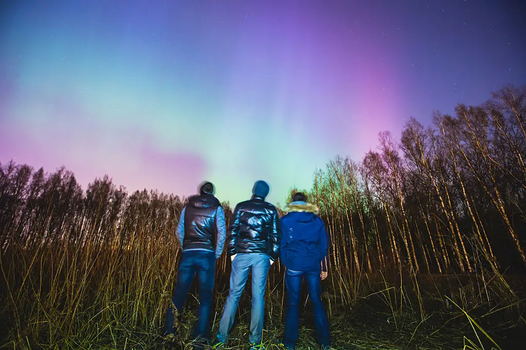 The aurora often rewards patience. Plan several nights for aurora hunting rather than pinning everything on a single evening. Experts recommend staying at least three to four hours on a good night because aurora activity can strengthen unexpectedly; substorms sometimes bring dramatic intensification after long quiet spells. Bring snacks, warm drinks, and a comfortable seat so you can wait without fuss. Take short warm breaks indoors if cold becomes draining and return when refreshed. If you’re traveling with family, schedule alternates so someone always keeps an eye on the sky. Remember that sometimes the most memorable shows are slow and deliberate, with shifting curtains and subtle movement rather than explosive color. Patience also helps you notice small formations that cameras later reveal as beautiful scenes. (Image alt text: Small group watching the faint aurora, wrapped in blankets.)