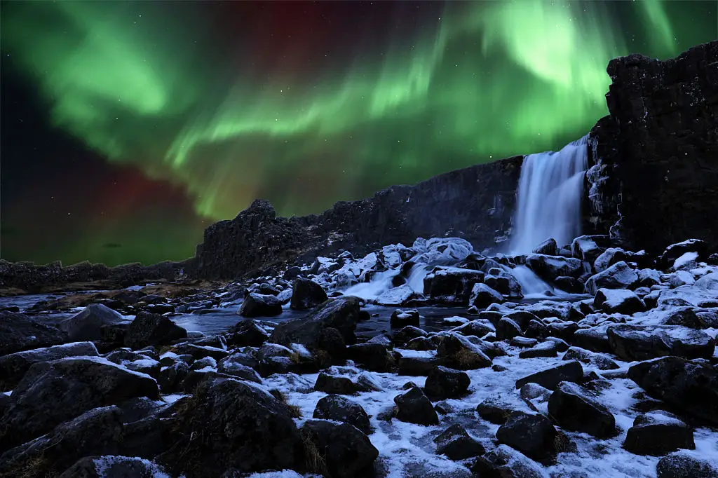 Light pollution is the enemy of aurora viewing. Avoid bright city centers and seek dark spots within reasonable distance of your base. Þingvellir National Park, areas around Jökulsárlón glacier lagoon, the Reykjanes Peninsula outside Reykjavik, and regions near Akureyri in the north are reliable choices because they combine open horizons with lower light. Each spot has its microclimate, so moving even a short distance can bring clearer skies. If you’re staying in Reykjavik, a quick drive to nearby darker locations is often enough. Carry a small map or GPS with known pullouts because some scenic stops sit along roads without proper parking. Check local forums or your tour operator for recommended viewing fields; locals often know calmer pockets away from crowds. (Image alt text: Aurora over Þingvellir National Park.)