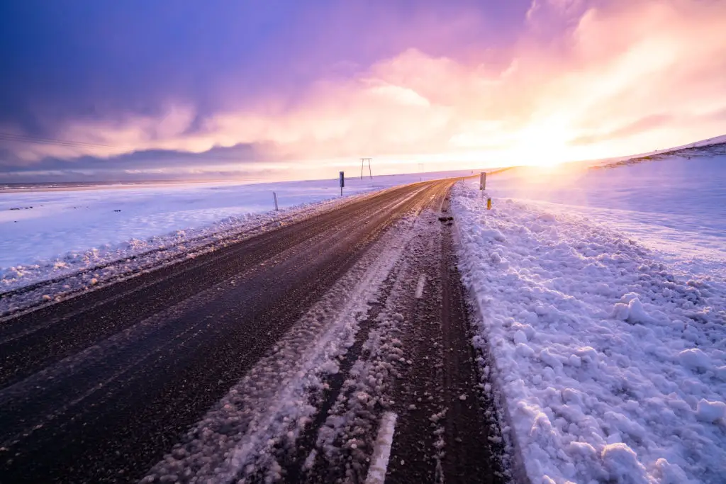 Road safety matters more than chasing a photo. Iceland’s roads can be icy and narrow in winter. Use official pullouts and parking areas rather than stopping on the shoulder, and never block traffic. If you’re on a self-drive trip, check road conditions at road.is before heading out. Visibility can change quickly, so drive at safe speeds and keep headlights on. If a guide suggests a spot, trust their experience—local guides often know safe places with good views. Always bring basic emergency supplies: warm blanket, water, phone charger, and a flashlight. Let someone know your plans and estimated return time. If conditions turn risky or foggy, head back; no photo is worth a vehicle accident on an icy night. (Image alt text: Car parked at a designated pullout beside a dark winter road.)