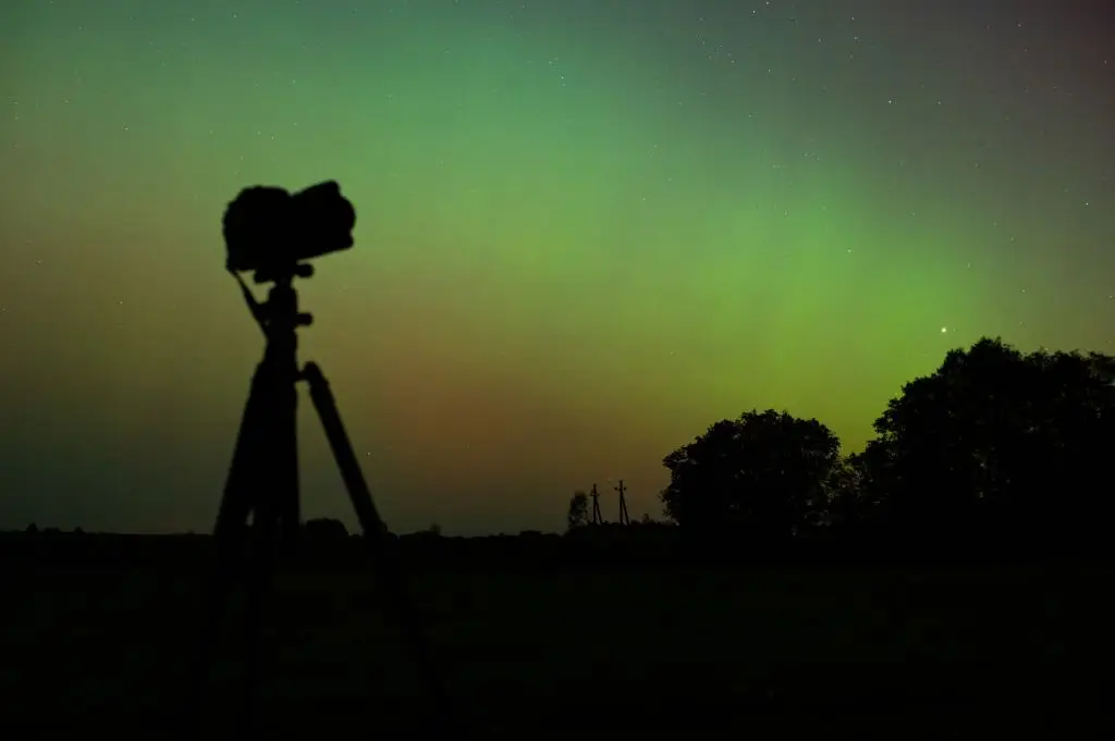 You don’t need pro gear to capture the aurora, but knowing a few settings helps. Use a DSLR or mirrorless camera with a wide-angle lens and set it to manual mode. Try a wide aperture (f/2.8–f/4), ISO in the 800–3200 range depending on camera noise, and shutter speeds between 5 and 20 seconds. Manual focus is key—set to infinity or focus on a distant light source, then lock it. Take a few test shots facing north and adjust exposure until you see structure. If stars are trailing excessively, reduce exposure time. A sturdy tripod is essential; a beanbag on a car roof works if you lack one. Bring extra batteries and a remote shutter or intervalometer for longer sequences. Practicing these settings during twilight helps you avoid fumbling when the lights show. (Image alt text: Camera on tripod aimed at northern lights with sample settings.)