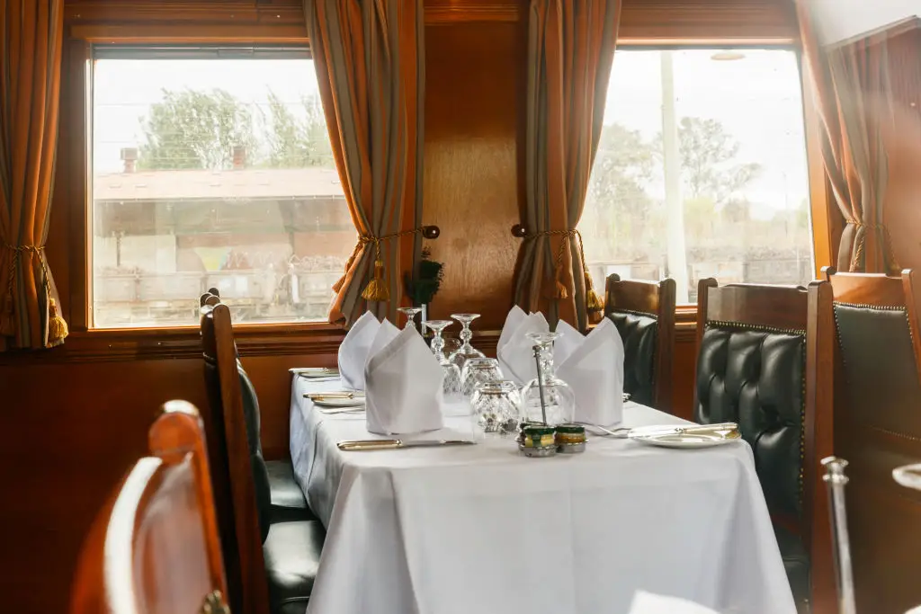 Golden Chariot showcases South India’s rich temple architecture, beaches, and backwater landscapes from a distinctly styled purple-and-gold train. Routes typically begin and end in Bengaluru and include stops in Karnataka, Goa, Kerala, and Tamil Nadu, with curated visits to palaces, temple sites, and coastal towns. Coaches feature comfortable cabins, two restaurants, and wellness amenities such as a small spa and gym on board, according to tourism reports. Travel coverage in 2025 provides a price range for deluxe cabins and notes the train’s regional focus. The best time to travel is the cooler season, generally October through March, which makes temple walks and coastal excursions more pleasant. Booking tip: reserve via the Karnataka tourism operator or approved agents and verify which excursions are included with each itinerary. Ideal images include the purple exterior at railway platforms, intimate cabin interiors, and local temple façades visited on shore excursions. This train is a strong choice for travelers who want southern cultural depth combined with heritage-style onboard comfort.