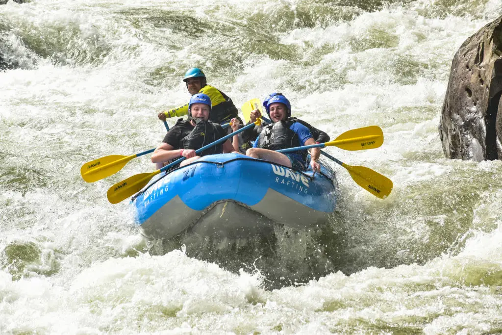 The Wall feels like a steeper, moodier section of the river where currents accelerate quickly. It’s commonly rated around Grade III and must be read as a short but powerful drop. When the boat noses into The Wall, the stern can lift, which is why your guide may ask for a hard “down” stroke to keep the raft flat. Staying low and balanced matters here more than anywhere else on a beginner run. If you ride in the front, brace for a stronger splash; if you’re mid or aft, you may get flung into the current briefly. Guides teach a standard command set to handle this moment — listen closely and respond instantly. For international travellers, note that conditions change across seasons; spring melt increases The Wall’s intensity, while winter runs are gentler but colder. Local operators will sometimes practice a rescue drill at the put-in and might show you how to hold a swimmer’s position if you go over. Respect the rapid by following pre-run briefings and keeping calm if an unexpected wave hits. The Wall rewards teamwork; when paddlers act together the quick section feels exciting rather than risky (source: shaantamresorts.com).