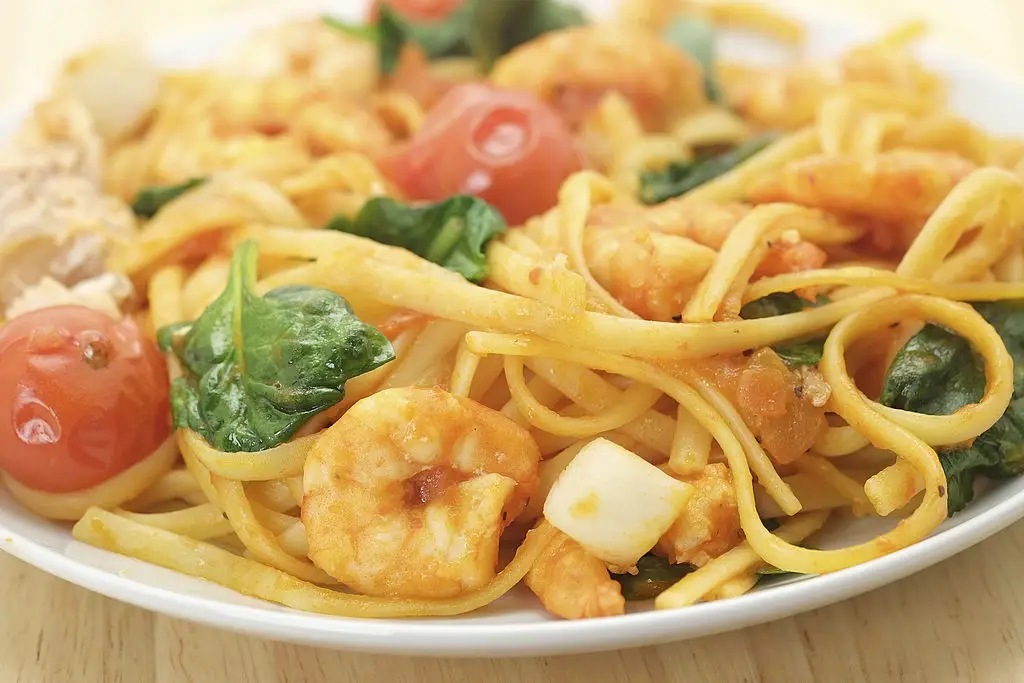 Here, coastal Indian flavors meet Italian comfort for a dish that’s surprisingly simple and elegant. Sear seasoned shrimp in a hot pan for a quick char, then set them aside. In the same pan, sauté garlic, ginger, and onion until translucent, add curry powder or garam masala, and deglaze with white wine or stock. Stir in coconut milk or a touch of cream, add lemon zest and juice, then toss with al dente linguine and the seared shrimp. Finish with freshly chopped cilantro and a scatter of toasted coconut or crushed roasted peanuts for texture. Use prawns or scallops if you prefer, and swap in gluten-free pasta for dietary needs. This dish comes together quickly, so par-cook pasta and have the curry base waiting to streamline assembly. Serve on warm plates with a wedge of lemon and a small herb garnish for a restaurant-style look. Its comforting familiarity makes it an ideal main course for dinner parties while introducing guests to a subtle Indian twist.