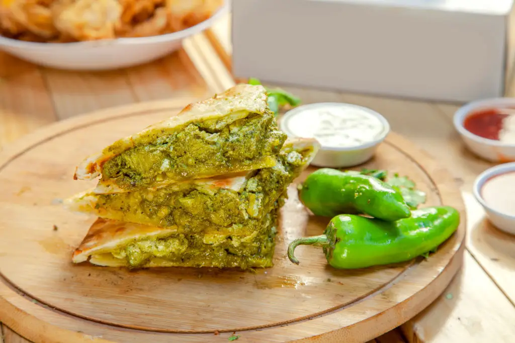 This mash-up blends the gooey comfort of a quesadilla with bold Indian spices for a satisfying appetizer or lunch item. Fill tortillas with a mixture of mashed spiced potato or crumbled spiced paneer, shredded cheese, green chilies, and chopped scallions. Cook on a hot skillet until golden and melty, then cut into wedges and serve alongside a bright mint-yogurt or mint-coriander chutney. Keep the filling moist but not wet, so the quesadillas crisp up nicely. For a vegan twist, use dairy-free cheese and a chickpea-potato filling seasoned with amchur and cumin. These are excellent on a buffet table because they’re easy to hold and stack. To save time, prepare the spiced filling ahead and assemble right before cooking to keep tortillas crisp. Garnish with a sprinkle of chaat masala and a wedge of lemon to invite guests to squeeze fresh acidity over the warm wedges. Paired with a fresh salad or bowl of spiced tomato soup, these quesadillas make for a well-rounded starter.