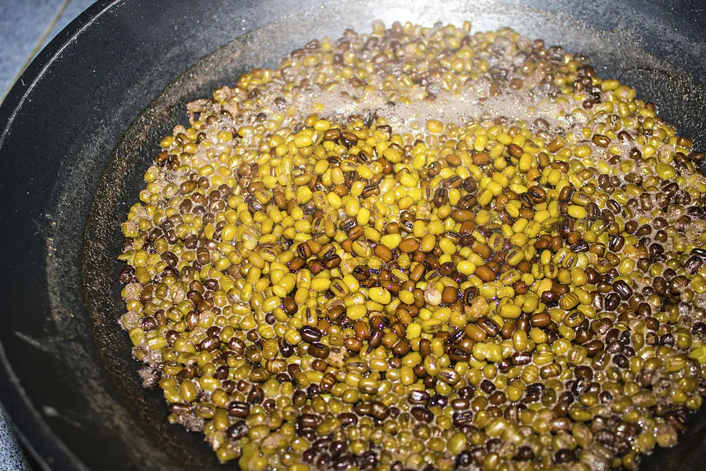 Roasting the moong dal dry in a skillet is a small traditional trick that adds a toasty, nutty note. Heat a wide, dry pan over medium heat and add the drained dal. Stir continuously for 3–5 minutes until the dal turns a pale golden color and releases a warm aroma. Watch closely; the change is subtle and happens quickly. Roasting also firms the dal’s surface slightly so it breaks down pleasingly during cooking, creating a silkier mouthfeel. After roasting, transfer the dal to a bowl and let it cool briefly before combining with rice. This step is common in many Tamil households and is often mentioned by cooks who prize depth of flavor over speed. If you’re in a hurry, a light roast of 2 minutes still helps, but avoid browning the dal too dark—aim for light gold. The aroma you get during this step is a reliable cue that you’re on the right track.