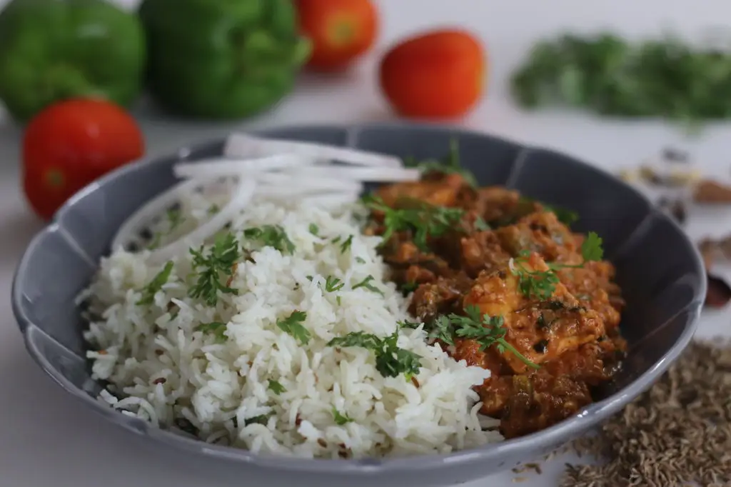 What it is: Jeera Pulao is a simple, fragrant rice dish where cumin seeds are tempered in ghee or oil and then cooked with basmati rice until grains are separate and aromatic. Why homemade is better: Takeout rice can be sticky, overly oily, or bland; cooking rice fresh at home gives you control over water ratio, spice tempering, and add-ins like peas or roasted cashews. Properly cooked jeera pulao cleanses the palate and lifts richer mains without competing with their flavors. Prep time: 20–30 minutes. Difficulty: Easy. Substitution tip: If long-grain basmati isn’t available, rinse regular long-grain rice thoroughly and reduce water slightly to achieve fluffier grains. Pairing suggestion: Serve with tandoori chicken, dal, or a vegetable curry to balance heavier dishes. Pro cook tip: Rinse rice until water runs clear to remove excess starch, then soak 20 minutes for fluffier grains. Temper cumin in hot ghee until it pops, add whole spices like bay or cinnamon for subtle complexity, and use a tight-fitting lid to steam the rice gently for perfectly separate grains.
