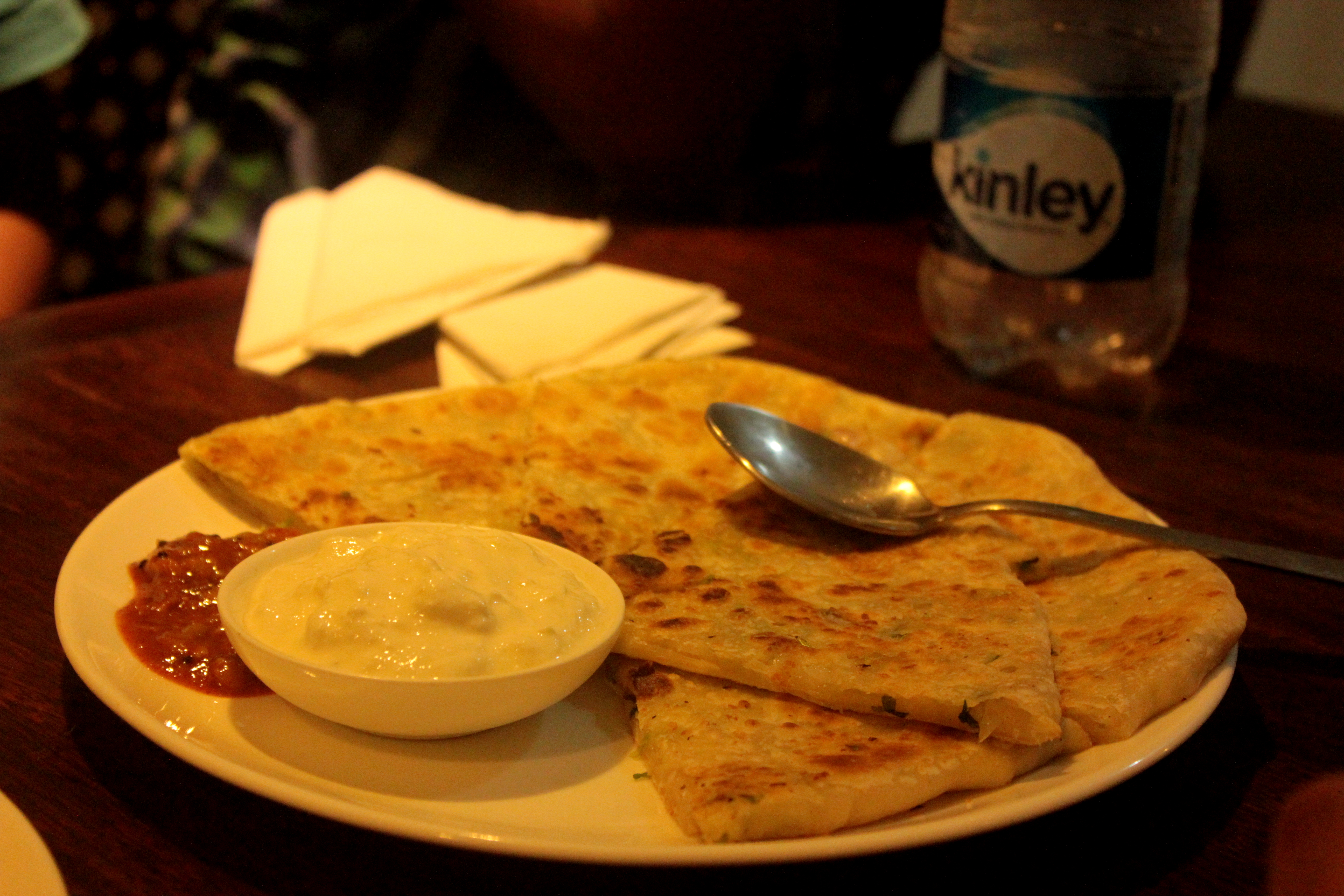 This mouth watering Cheese Paratha along with yogurt and lemon pickle is one of the delicious delicacies at The Indian Kaffe Express, situated in the heart of the French Colony in Pondicherry. Photo Credit: Wikimedia Commons @Bhavika Nanda