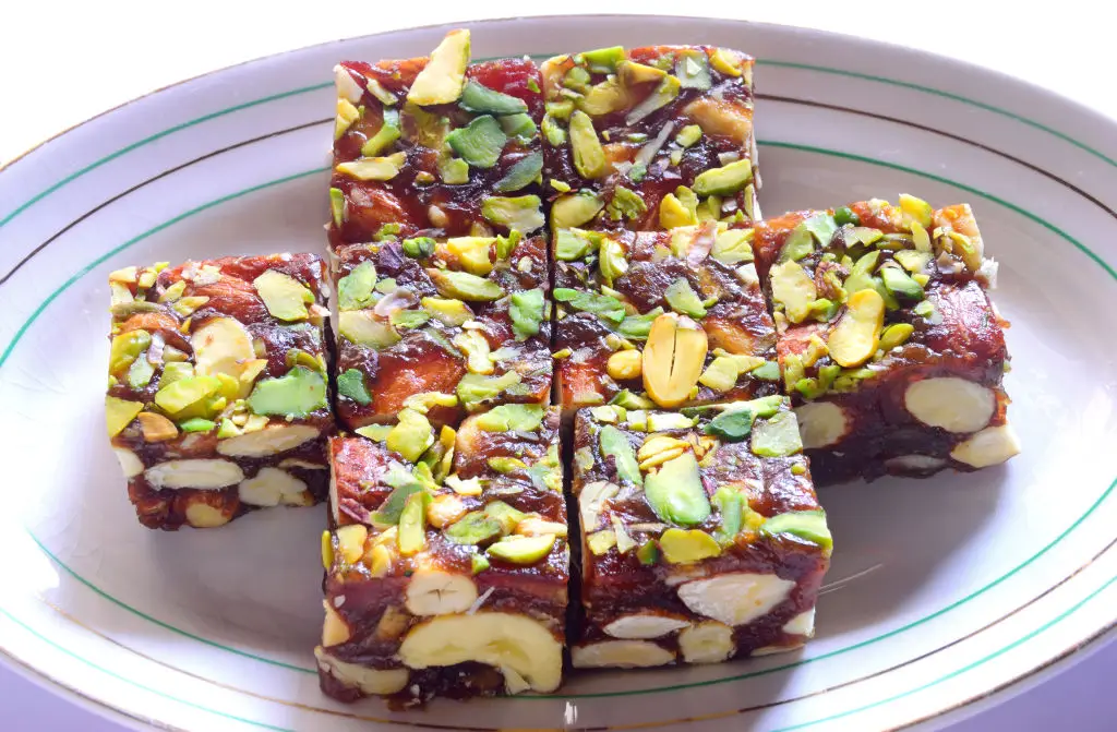 Barfi’s dense, fudge-like texture is perfect for experimenting with whole-fruit sweeteners. Replace white sugar with blended dates to make a naturally sweet, chewy date and nut barfi. Pulse pitted dates with roasted almonds and a touch of desiccated coconut until the mixture holds together. Press into a tray, chill, and cut into diamond shapes. For a traditional flavor, add a hint of cardamom and a garnish of slivered pistachio. This version provides fiber, minerals, and healthy fats from nuts while eliminating refined sugar. Keep portions modest, as dates are calorie-dense. Store in the fridge for a week or freeze portions for longer. This barfi works well for gifting because it keeps its shape and shows the same festive sparkle on a mithai plate—without the refined sweetener.