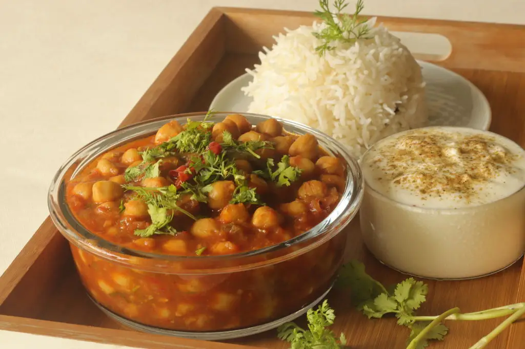 Ingredients (counted): canned chickpeas, onion-tomato base (onions + tomato puree counted as one combined aromatic in the five), chana masala powder (or garam masala), ginger-garlic paste, fresh cilantro. Start by frying the onion-tomato base until the oil separates—this shortcut gives a takeout-level depth without a long spice list. Add drained chickpeas and a hearty spoon of chana masala powder, then simmer so the sauce reduces and the chickpeas absorb flavor. Cook time is around 20 minutes. Finish with a squeeze of lemon and chopped cilantro; the acid lifts the dish and mimics the bright finishing touches you often taste in restaurants. Serve with flaky bhature or steamed rice for a satisfying plate.
