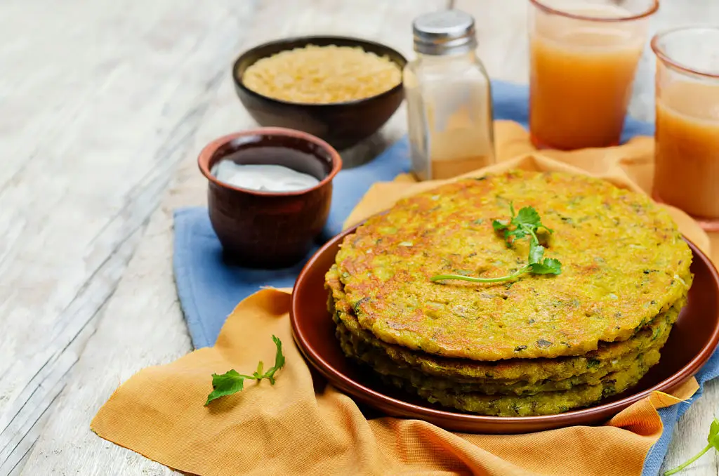 Pesarattu is an Andhra-style crepe made from green gram (moong) batter. It’s naturally protein-rich and can be served with an upma, chutney, or vegetable curry to make a complete bowl. The green gram base offers a firmer, savory alternative to grain-based breakfast items and delivers more plant protein than many smoothie bases built on fruit alone. For a bowl version, layer shredded upma or sautéed vegetables over folded pesarattu and add a side of tangy chutney. The batter can be made in advance and cooked quickly on a griddle. Pesarattu’s nutty flavor and higher protein content make it a practical choice for readers looking to start the day with lasting fullness and a savory palate.