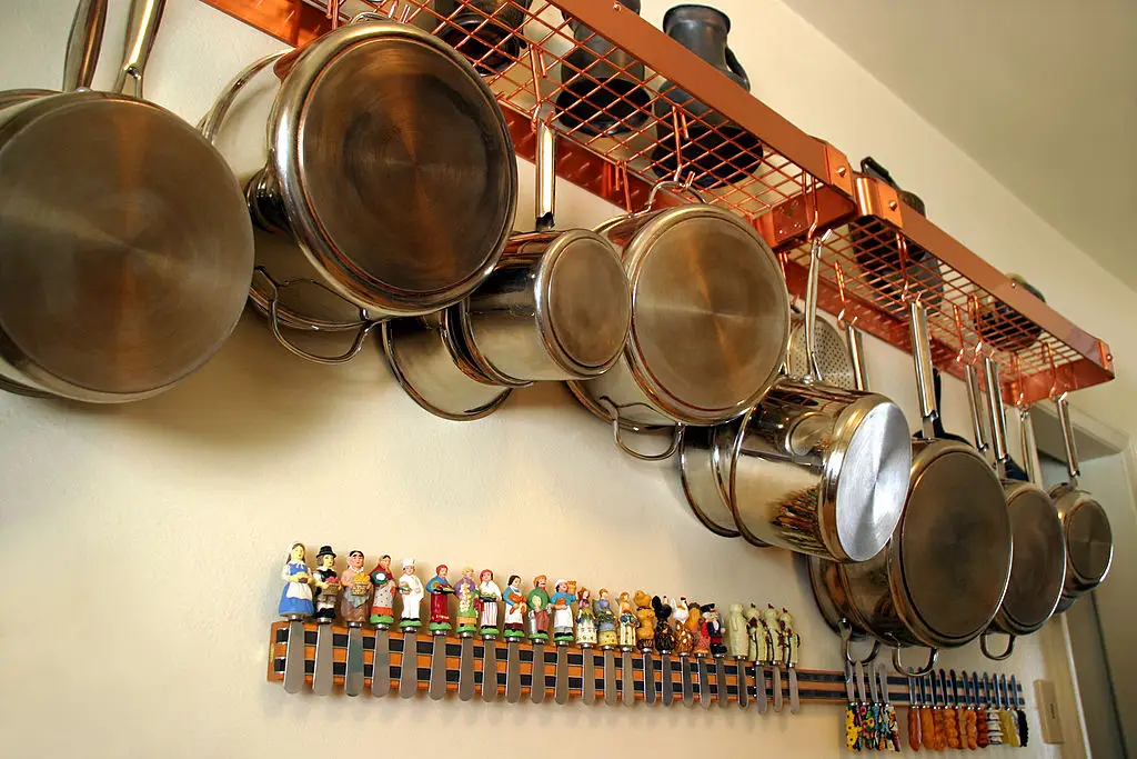 2. Use Vertical Space: Hanging Pot Racks and Wall Rails