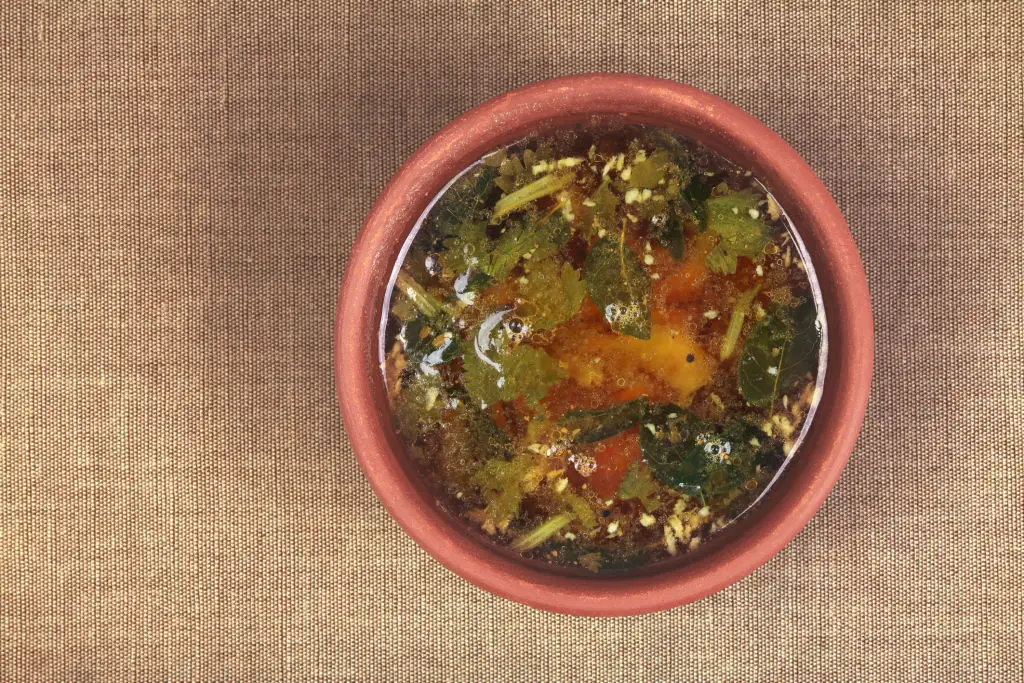 Rasam is a thin, peppery tamarind broth that acts like a digestive and a palate cleanser between heavier bites. Its bright character comes from tamarind, black pepper, cumin, tomatoes, and sometimes a small tempering of mustard and curry leaf. In Kerala sadya, rasam is served mid-meal to refresh the palate and aid digestion, especially after the richer curries. For convenience, look for rasam powder or instant mixes at Indian stores; they make a quick broth by adding the powder to boiled tamarind-tomato water. Rasam is naturally vegan and gluten-free, which helps guests with dietary needs. Difficulty: Easy. Time: 20–25 minutes. Serving tip: Keep rasam in a small pot and ladle a little into each plate during the second round to brighten the meal.