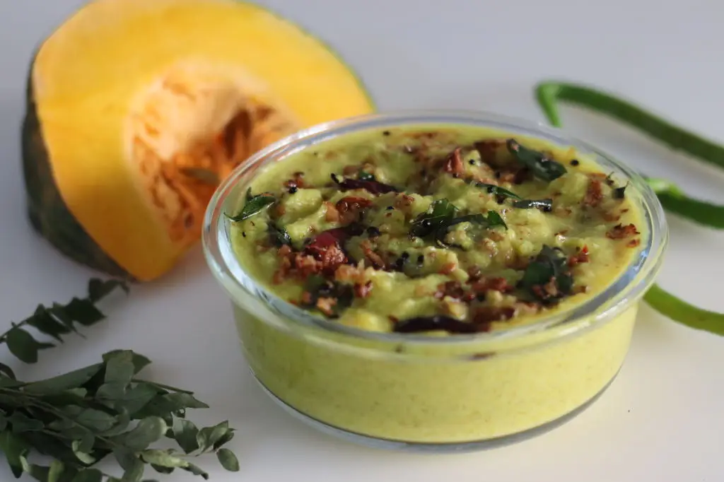 Erissery is a rich, comforting curry that combines pumpkin (or coconuty squash) with roasted coconut and legumes like black-eyed peas. The roasted coconut gives a nutty base that deepens the pumpkin's natural sweetness. In Kerala, erissery is a must because it adds body and a sense of fullness to the sadya. If fresh pumpkin varieties are not available, sugar or pie pumpkins and butternut squash are fine substitutes; they deliver the same texture and sweetness after cooking. Take a few minutes to roast the coconut until golden for maximum flavor, then grind it into a paste before adding it to the cooked pumpkin. Difficulty: Medium. Time: 30–40 minutes. Serving tip: Pair erissery with parippu or rice for a hearty mouthful.