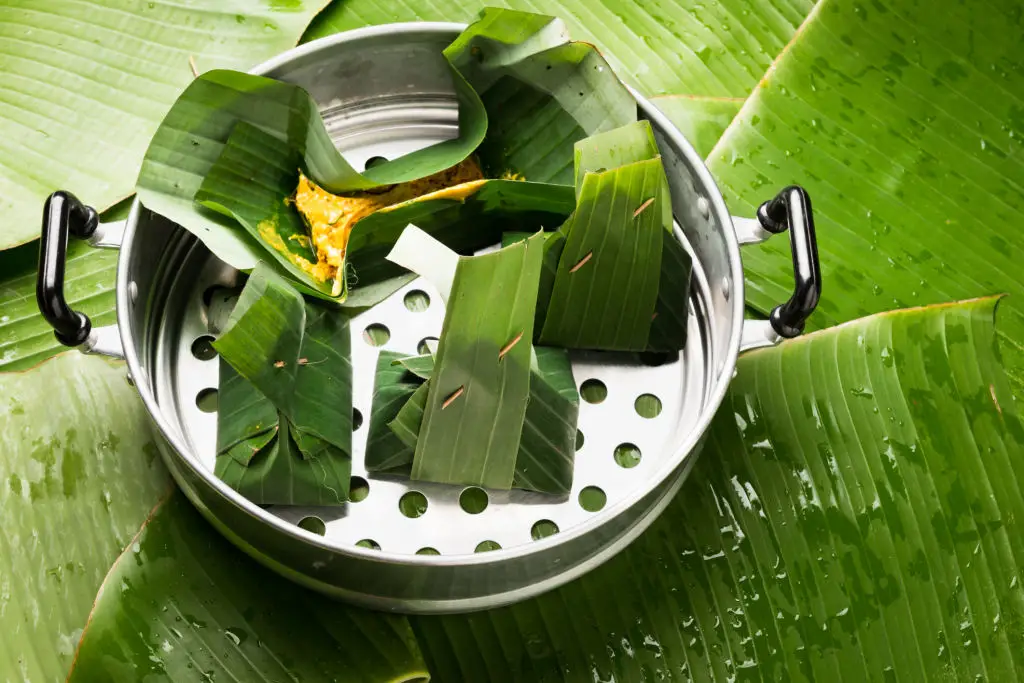11. Steaming in traditional vessels (idli steamers, patra/steamed leaf parcels)