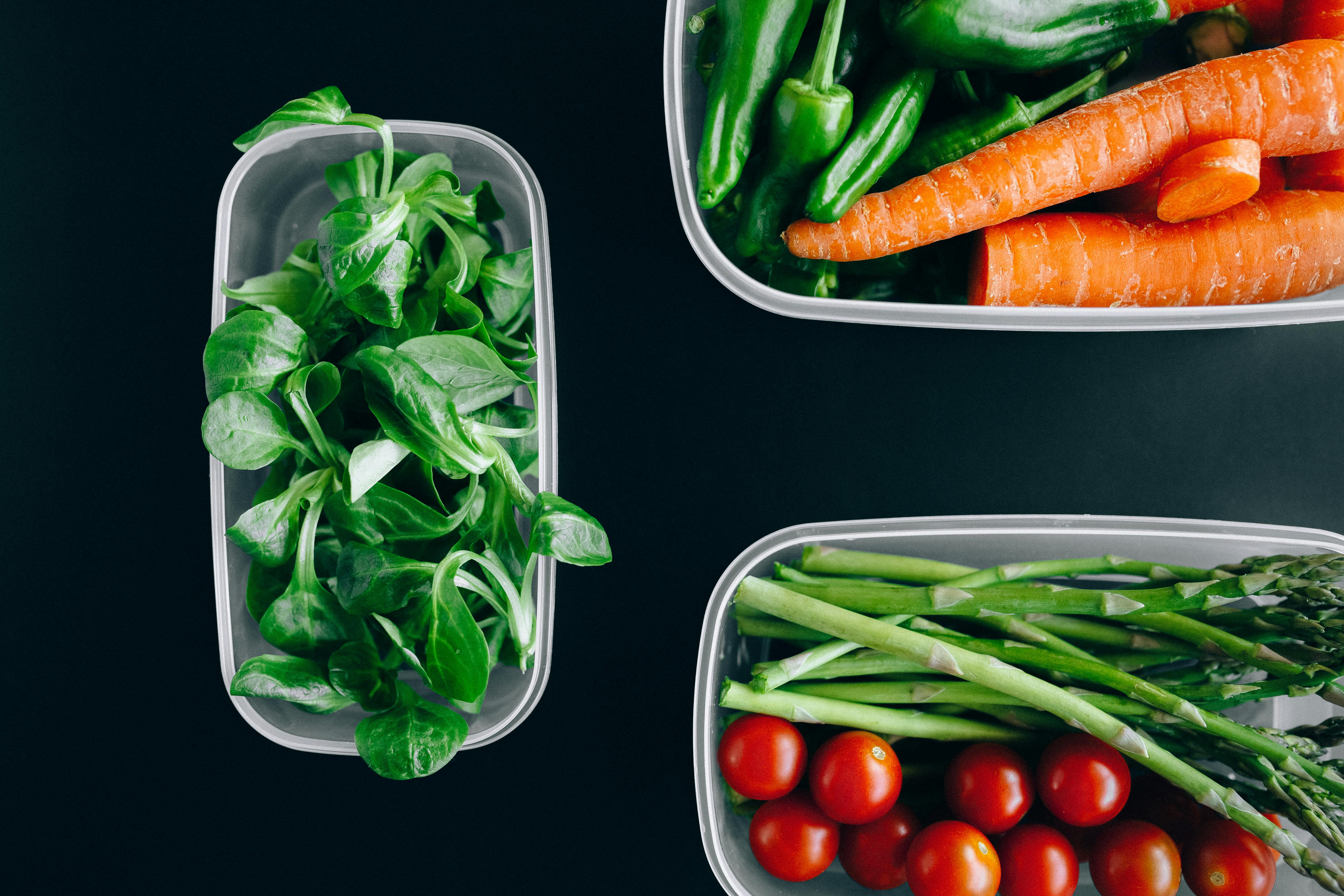 Organic vegetables displayed in plastic containers for a healthy diet. Photo Credit: Pexels @Nataliya Vaitkevich