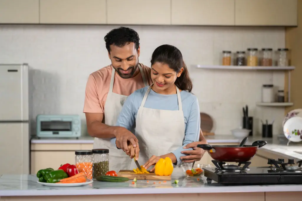 Make the day about food and family memory by turning sargi and the evening meal into a joint cooking project. Choose recipes with emotional meaning—chai and halwa from dadi’s notes, a regional sabzi that reminds you of home, or a new fusion dish that blends ancestral flavors with local ingredients. Split tasks so both partners participate: one handles the dough while the other prepares the stuffing, or one makes the halwa while the other sets the thali. Invite close family or keep it just for two. The act of cooking together creates conversation and hands-on care, which is fitting for a festival centered on nourishing another person. Add a small ritual moment before the meal: a short spoken intention, the lighting of a lamp, or a ring of bells. For couples in the U.S., sourcing a few specific spices or ingredients ahead of time helps—a visit to a local Indian grocery can be part of the day’s ritual. Food-based celebrations are inclusive and particularly good when health or fasting is a concern.
