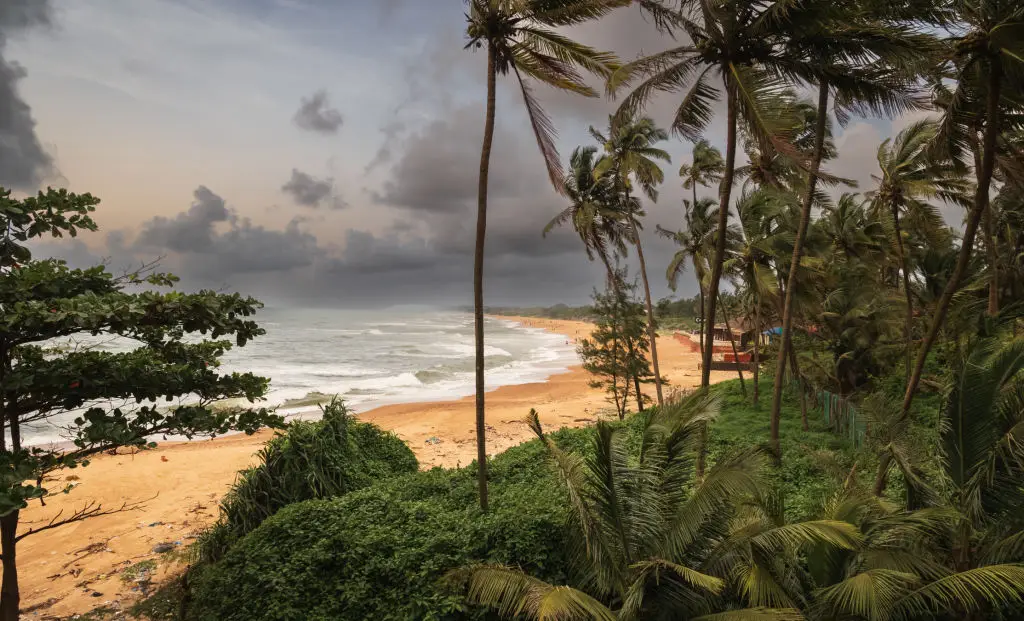Varkala sits on a dramatic cliff that overlooks the Arabian Sea, and that cliff-front vibe sets it apart. You’ll find narrow lanes above the beach full of cafés, Ayurvedic clinics, and small shops selling local snacks. The setting makes Varkala ideal for travellers who enjoy a shoreline walk followed by an Ayurvedic massage or a yoga session with an ocean view. Thiruvananthapuram (Trivandrum) is the nearest major airport with straightforward road transfers to Varkala, so flying through Kochi or Trivandrum works well for North American visitors. Best time to visit is typically October through February when the weather is driest and outdoor activities are comfortable. Activities include cliff-top sunset views, yoga classes, short hikes to nearby beaches, and sampling Kerala’s cuisine—do try local seafood and coconut-based dishes. Accommodation ranges from cliff-side guesthouses to mid-range hotels with terraces facing the sea. Varkala blends wellness culture with easy beach time, making it a good pick for travellers who like their beach trip to include rest and gentle exploration.