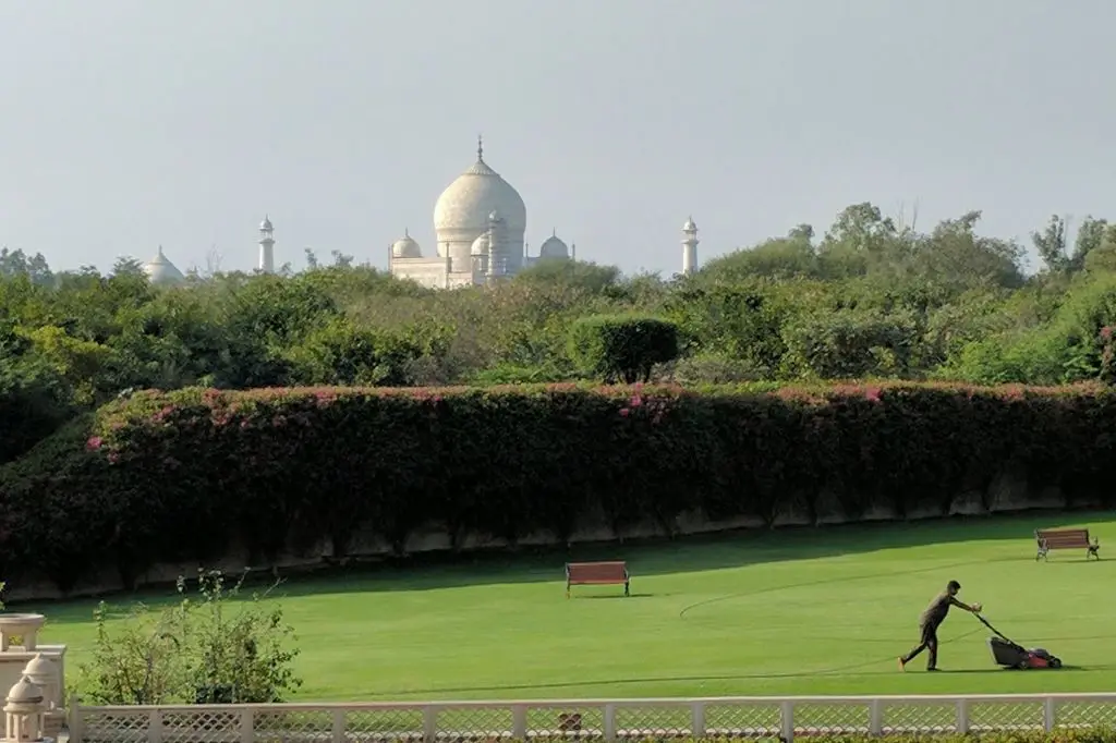 Oberoi Amarvilas is designed around its direct views of the Taj Mahal—many rooms offer uninterrupted vistas, and the hotel schedules sunrise viewing services to make early visits comfortable and private. The property’s Mughal-inspired gardens and marble décor create a thematic complement to the monuments of Agra. Practical access: Agra has domestic airport options and straightforward rail links from Delhi; the nearest major international hub is Delhi’s Indira Gandhi International Airport (DEL) with a 3–4 hour road transfer, or shorter transfers from Agra’s local airport when available. The best visiting months are October to March for clear skies and mild temperatures. Typical nightly rates generally range from $400–$1,200 depending on view and suite selection. The Amarvilas is ideal when the Taj is your primary focus—choose a room with a Taj-facing balcony for early-morning photos and private moments.