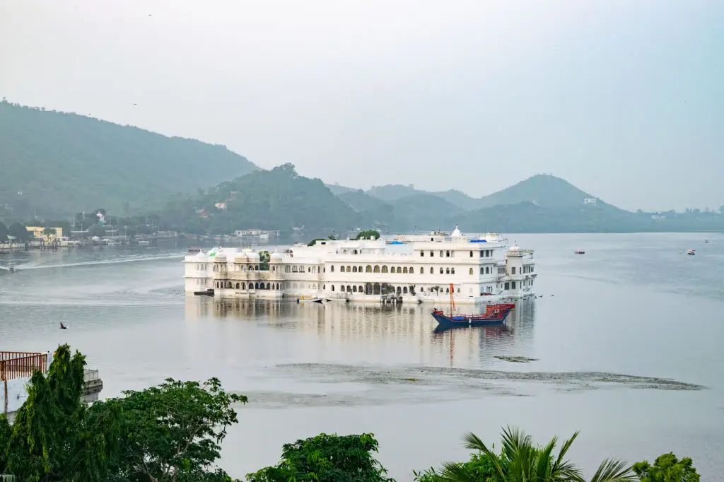 The Taj Lake Palace is literally set on an island in Lake Pichola, offering an intimate, almost movie-like setting that has made it a favorite for honeymoons and special occasions. Private boats shuttle guests between the island and Udaipur’s ghats, which is part of the experience—arrivals feel ceremonial and scenic. Rooms and suites are luxurious and oriented to the lake or the city’s palaces, and dining often includes terraces with sunset views. Maharana Pratap Airport (UDR) is the closest airport, with a 30–40 minute transfer. Peak visiting months are October to February for comfortable weather and clear skies. Representative nightly rates often range from $400 to $1,200, depending on category and season. The Lake Palace is ideal when you want a stay that’s all about setting and quiet indulgence; service is geared to romance and attention to small details like private dining on the terrace.